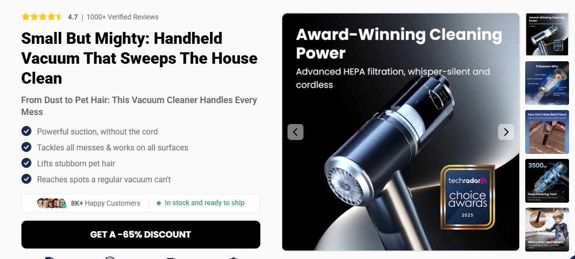 Thousands of users have praised the Dustaclean Handheld Vacuum for its performance and convenience. Here’s a snapshot of common feedback:
